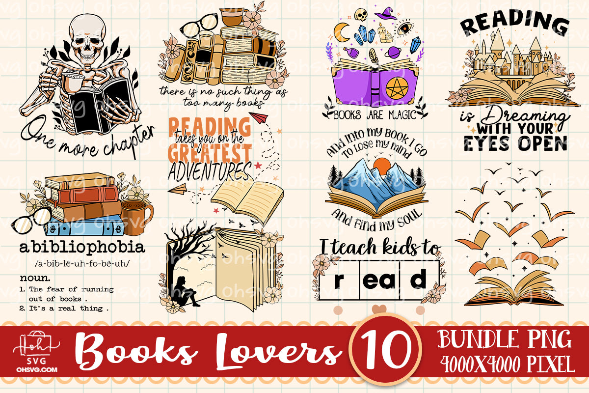 Reading Book Bundle PNG, Love Reading PNG, Book Lovers PNG, Book Worm PNG