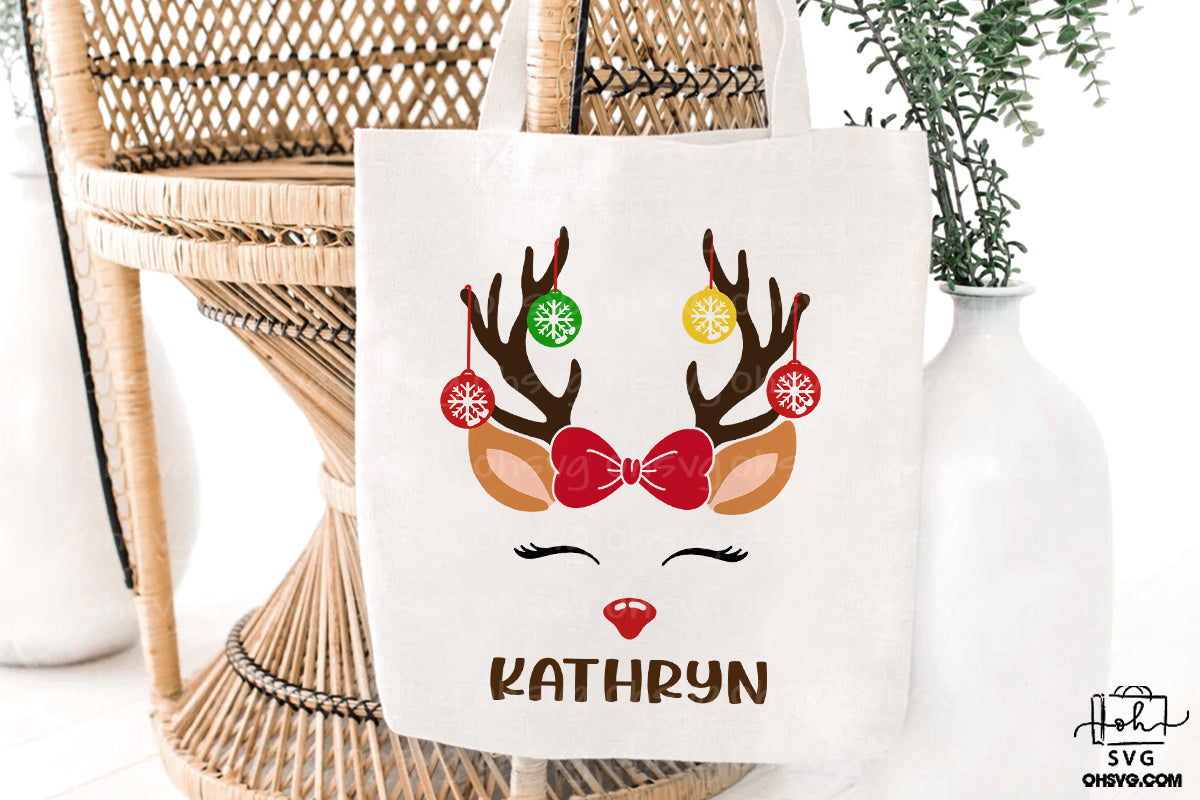 Reindeer With Ornaments & Bow PNG, Custom Name Christmas Reindeer Face PNG