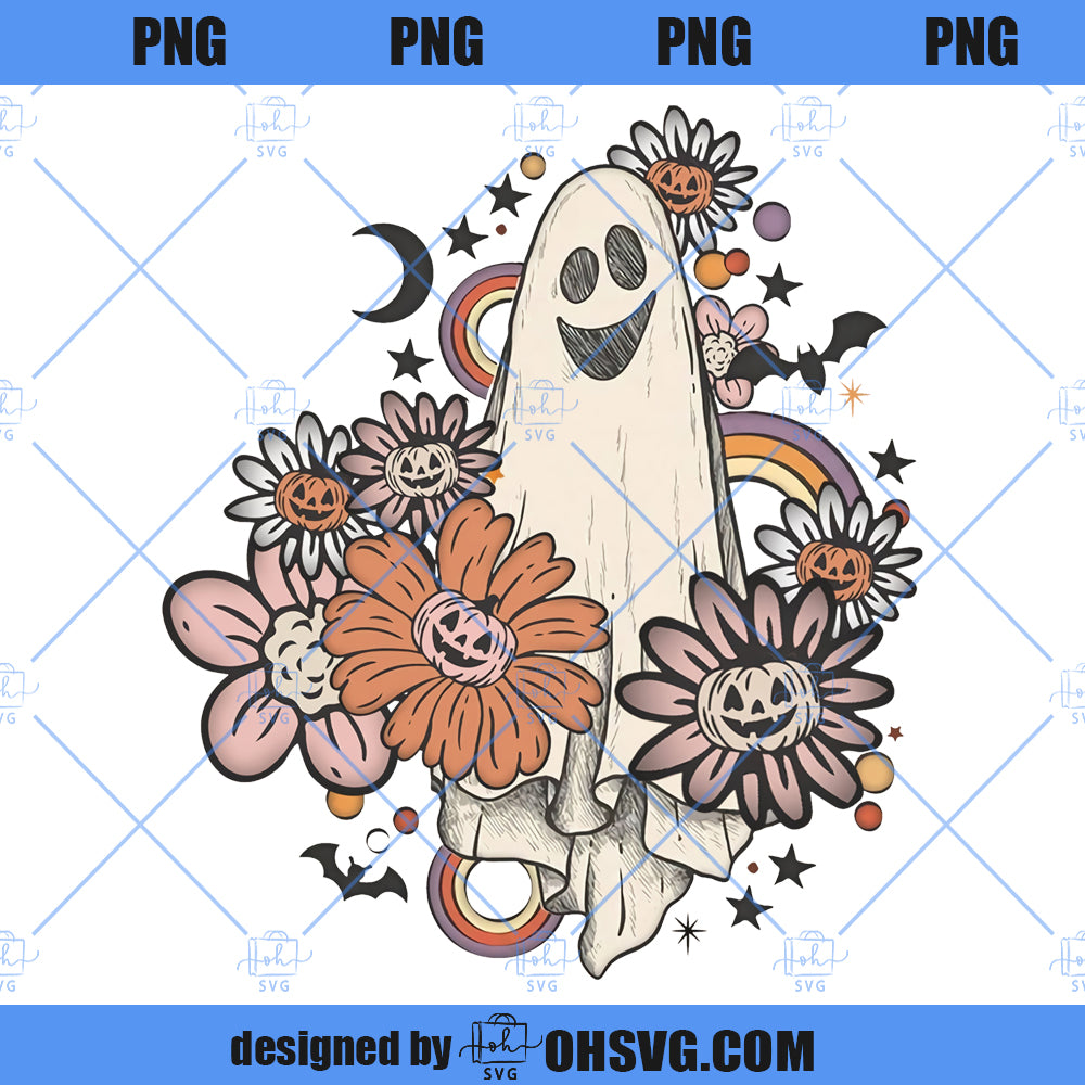 Retro Halloween PNG, Vintage Floral Ghost Halloween PNG, Retro Fall PNG, Vintage Ghost PNG