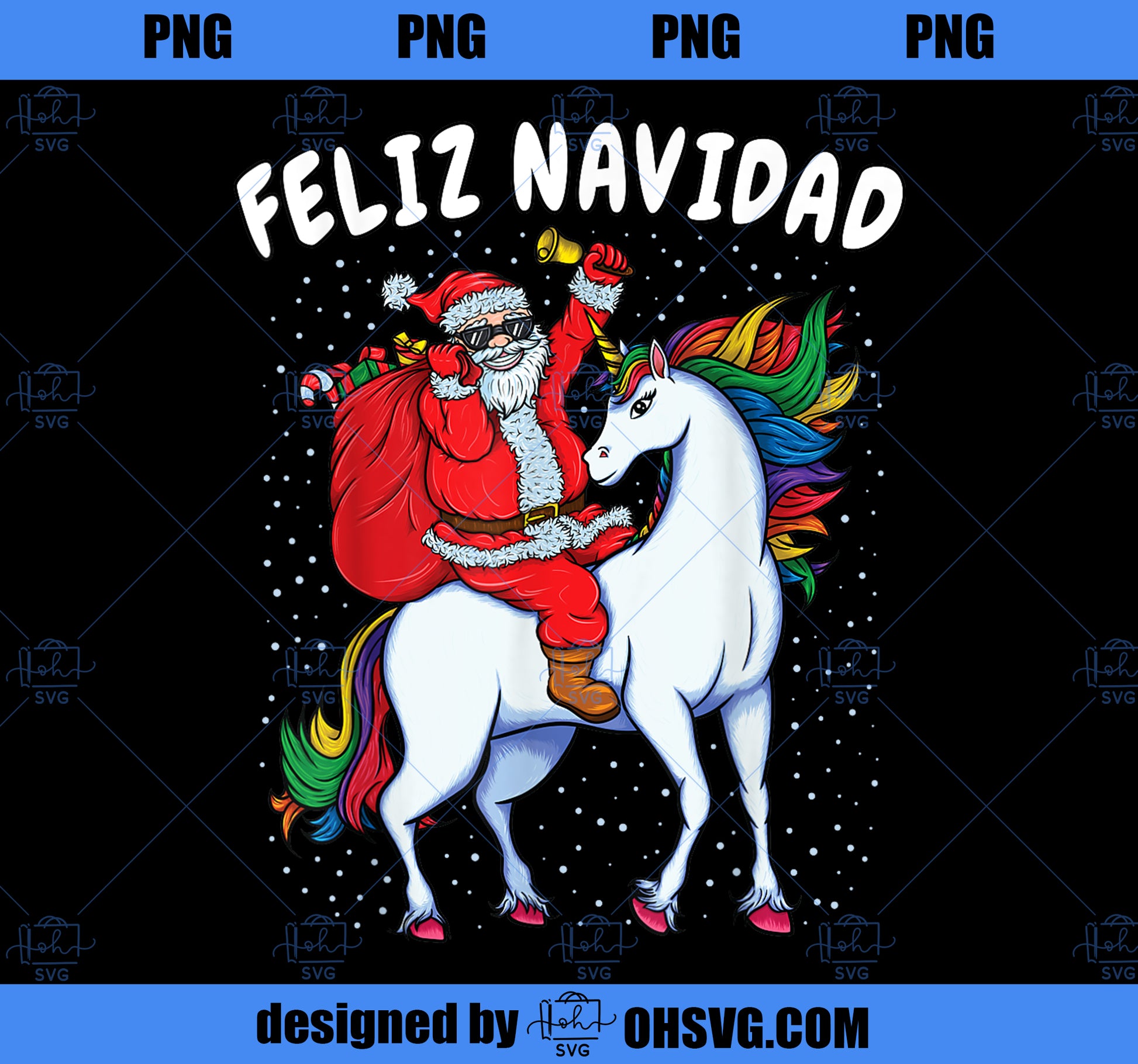 Santa Riding Unicorn Spanish Christmas Gift Feliz Navidad PNG, Magic Unicorn PNG, Unicorn PNG
