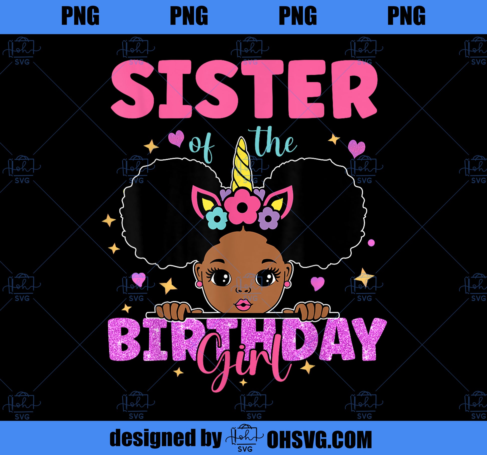 Sister Of The Birthday Girl Melanin Afro Unicorn Princess PNG, Magic Unicorn PNG, Unicorn PNG