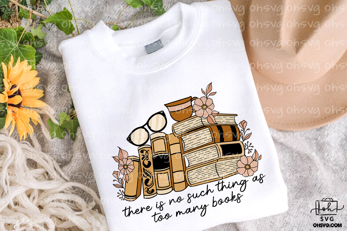 There Is No Such Thing As Too Many Books PNG, Love Reading PNG, Book Lovers PNG