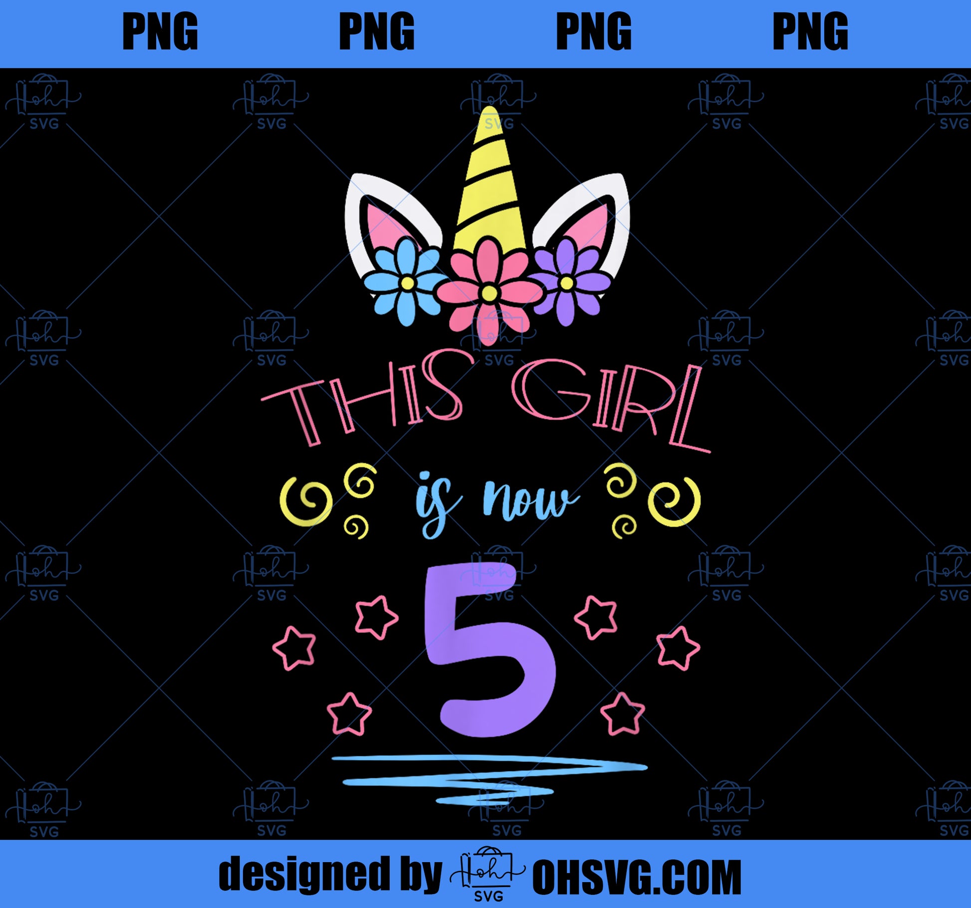 This Girl Is Now 5 Birthday Unicorn Floral Horn Theme Party PNG, Magic Unicorn PNG, Unicorn PNG