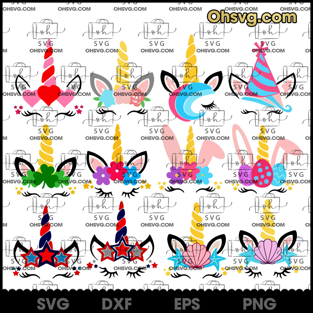 Unicorn Bundle SVG, Unicorn Head SVG, Unicorn Horn SVG, Floral Unicorn Digital File SVG