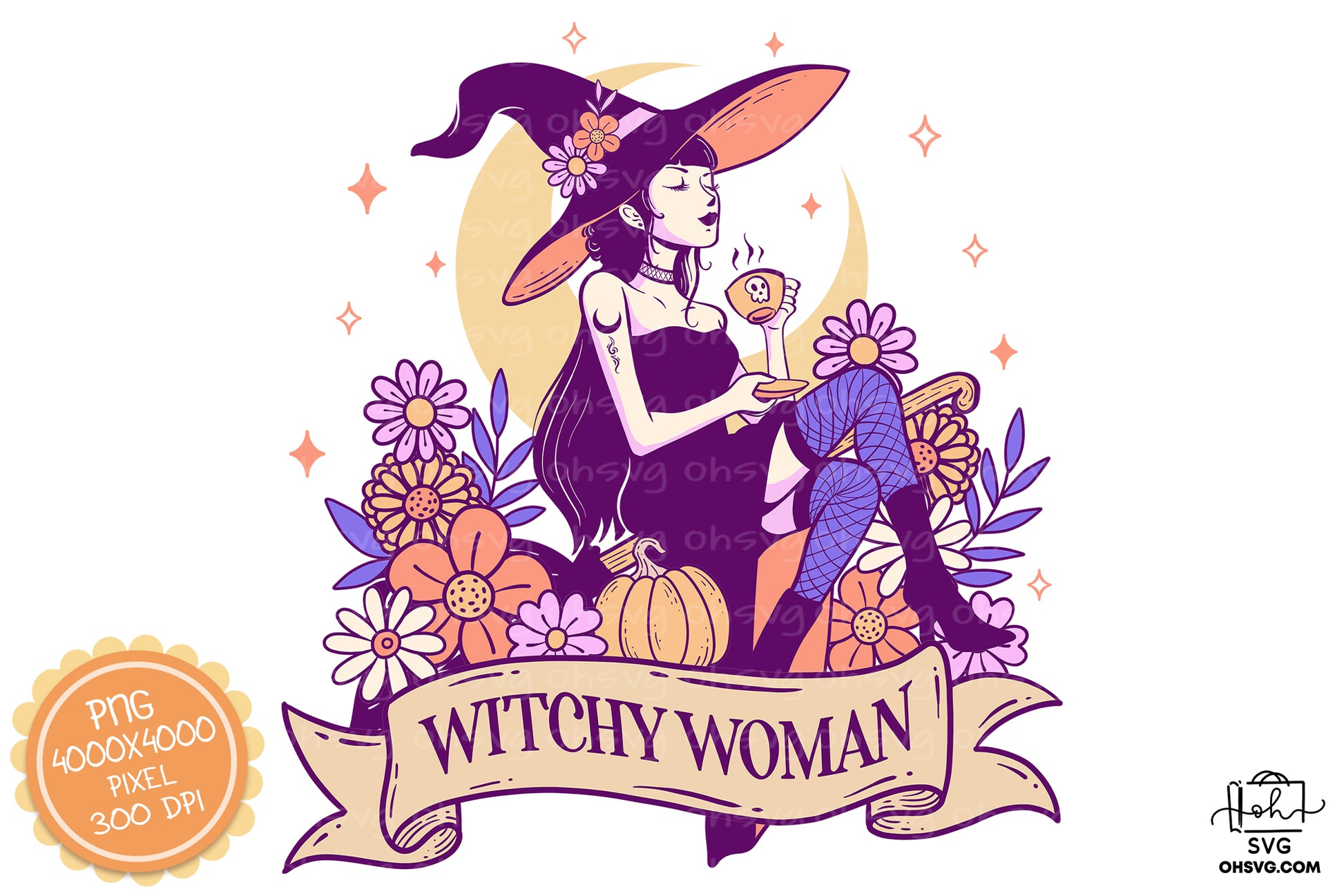 Witchy Woman Sublimation PNG, Witch Halloween PNG, Halloween T-shirt PNG