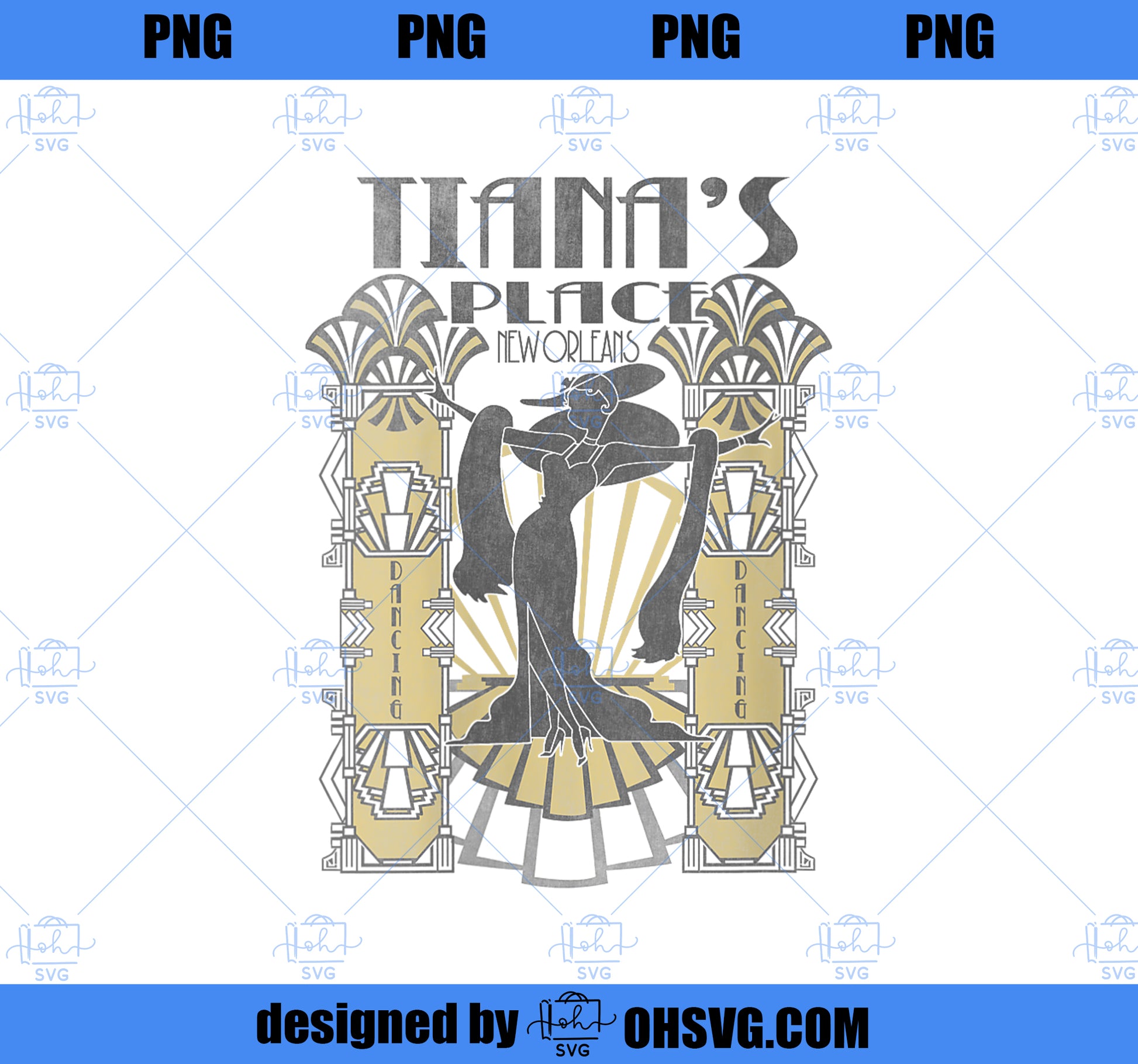 Womens Disney Princess And The Frog Tiana_s Place Art Deco Poster V-Neck PNG, Disney PNG, Princess PNG